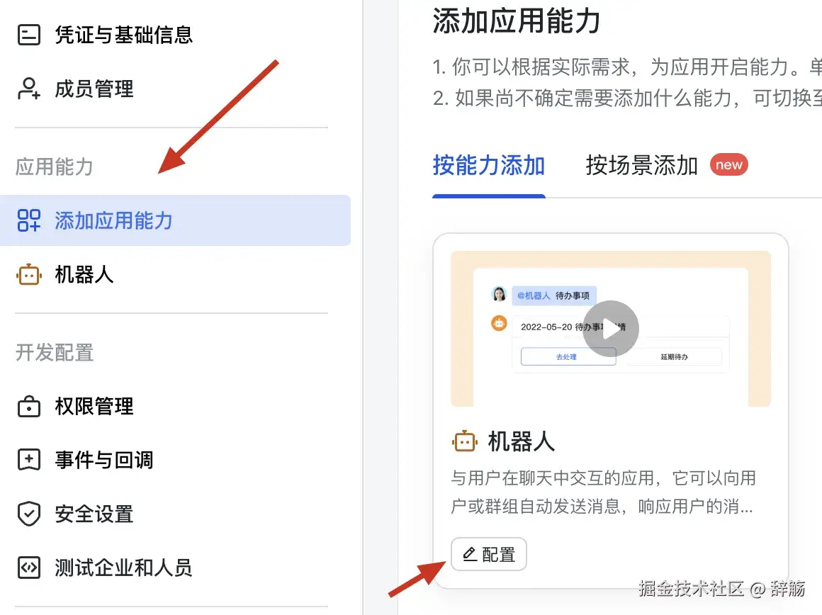 添加机器人能力:左侧菜单栏