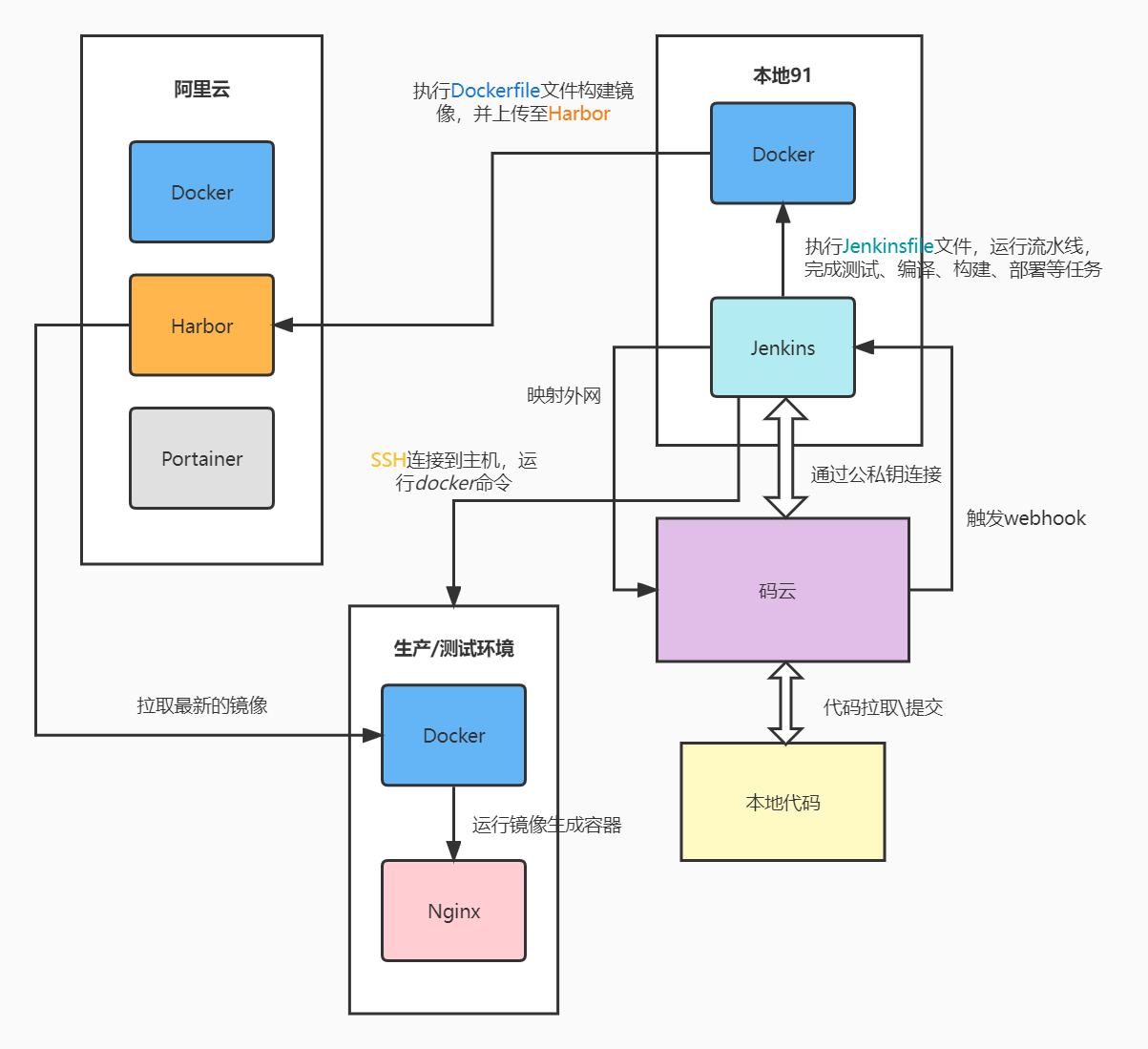 4个环境:本地91、阿里云、本地测试环境、远程生产环境